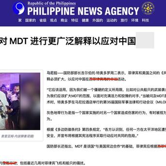 【菲防长向中方“发出警告”:菲美开始谈判启用《共同防御条约》】菲律宾防长特奥多罗8月27日表示,菲美已经开始就扩大《共同防御条约》对“武装袭击”适用范围的解释进行谈判,目的是增加条约启用的“灵活性”,以应对中国在南海采取的一系列行动。话说的挺拗口,但意思很明确,就是菲律宾军方觉得彻底顶不住了,逼着“带头大哥”美国依据两国盟约直接下场“对付”中国。