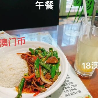 我在澳门游玩,都是去的经济性的饭店,在大三巴附近吃的辣椒炒牛肉盖饭42澳门币,加一杯柚子茶18澳门币,总计60,支付宝付款约53人民币。牛肉分量很多,还不错。