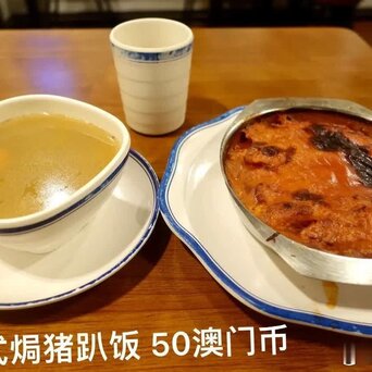 在路环一家饭店吃的葡式焗猪扒饭50澳门币,猪趴也很多,配菜还有一碗南瓜排骨汤。个人觉得性价比还可以,味道也不错。